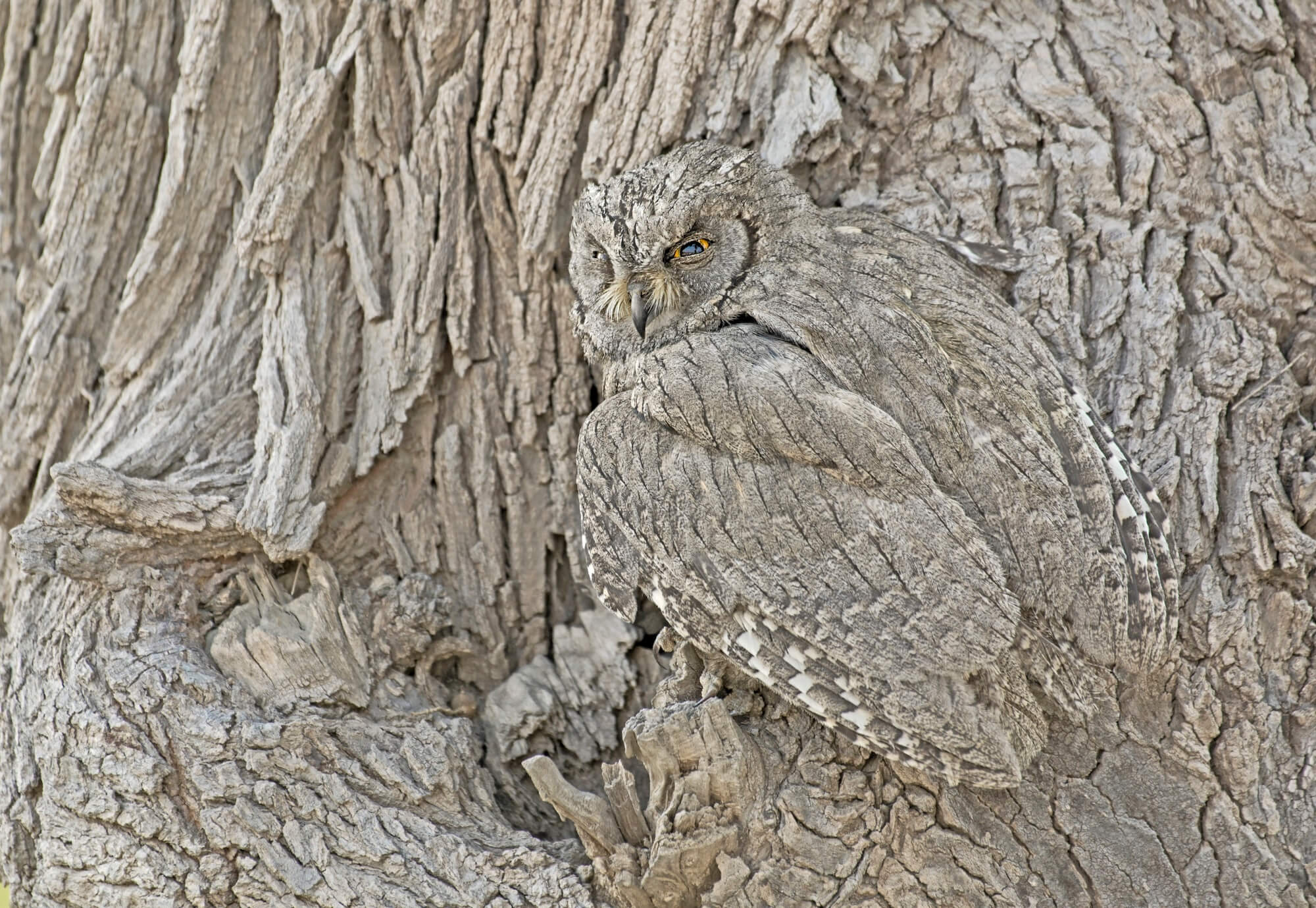 Owls camouflage themselves in trees as a survival mechanism. Their plumage often mimics the colors and patterns of tree bark, branches, or leaves, blending them seamlessly into their surroundings. This camouflage helps them avoid predators and remain hidden from prey. Their ability to stay still and align their bodies with the texture and shape of the tree enhances this concealment, making them nearly invisible in their natural environment.